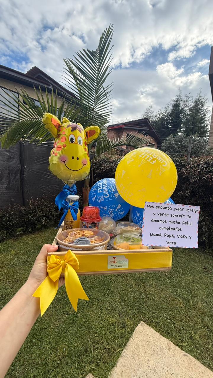 AVENTURA MAGICA KIDS: Contiene -Wafles de Mickey con fresa y chocolate -Frutica picada -leche chocolatada -Rollito de salchicha -Huevo kínder-Bon yogurt -Set de cubiertos en madera -Bandeja en madera -Tarjeta personalizada -Hermosa decoración infantil con globito de jirafa o cebra, personalizable para niño o niña